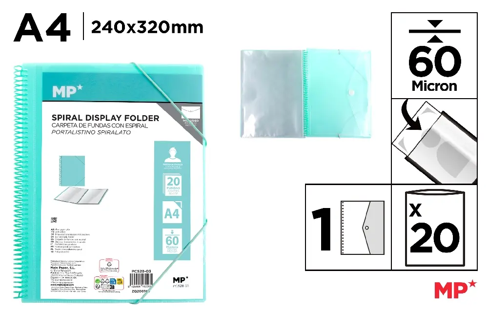 CARPETA 20 FUNDAS A4 CON ESPIRAL Y GOMAS
