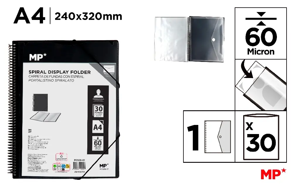 CARPETA 30 FUNDAS A4 CON ESPIRAL Y GOMAS