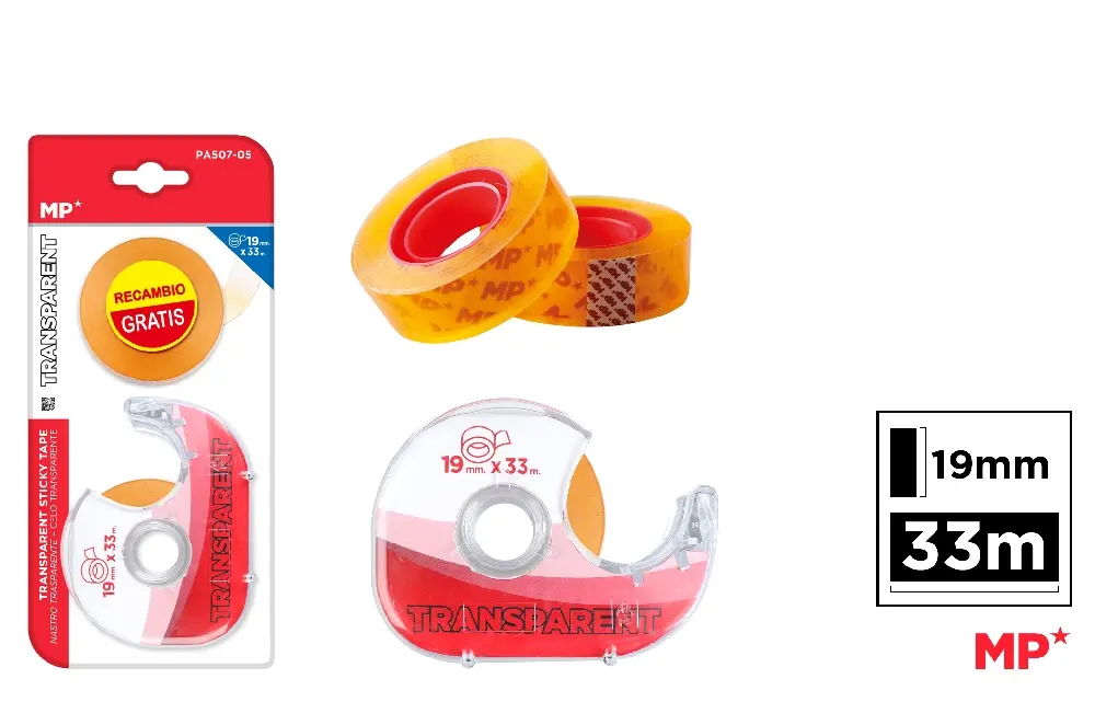 CINTA ADHESIVA TRANSPARENTE CON DISPENSA