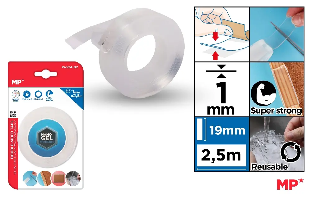 CINTA DE DOBLE CARA TRANSPARENTE 1 mm x