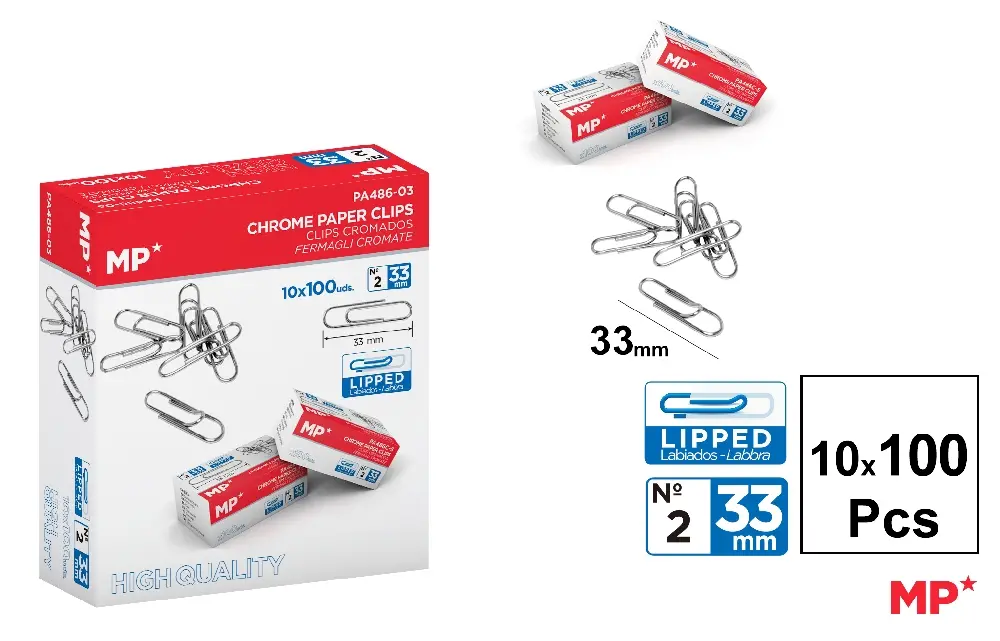 CLIPS NIQUELADOS 33MM CAJA 100UX10