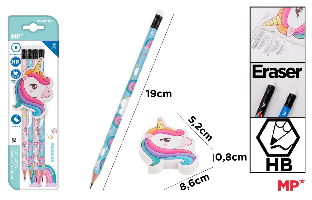 LÁPICES DECORADOS+GOMA FANTASÍA.