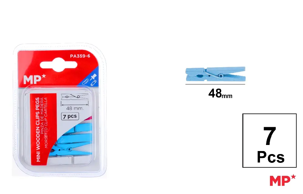 PINZA MADERA DE COLORES 48 mm 7 Uds.