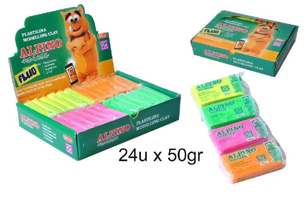 PLASTILINA 50 g 24 Uds. FLUO ALPINO.