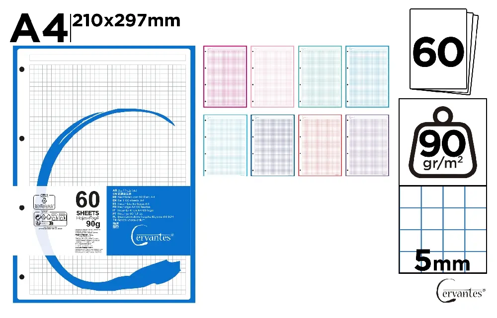 RECAMBIO A4 CUADRÍCULA 5 x 5 mm COLOR 90