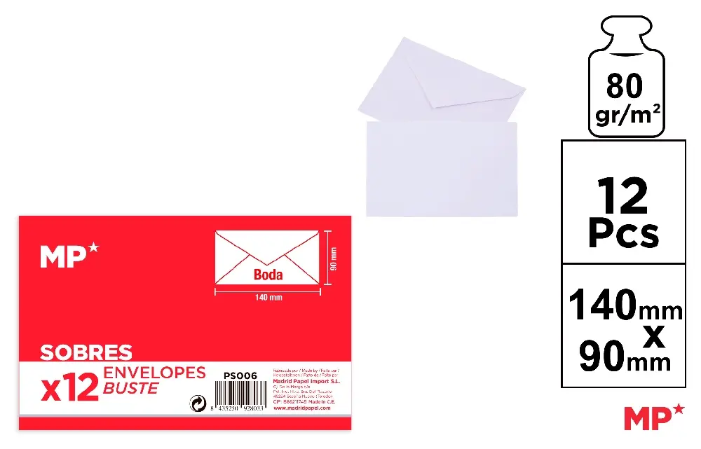SOBRE BODA 140 x 90 mm 12 Uds..